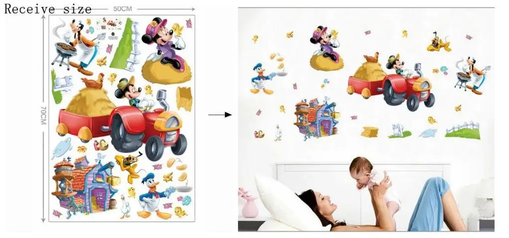 Мультфильм Микки Минни Маус Детские домашние наклейки настенные Сти...