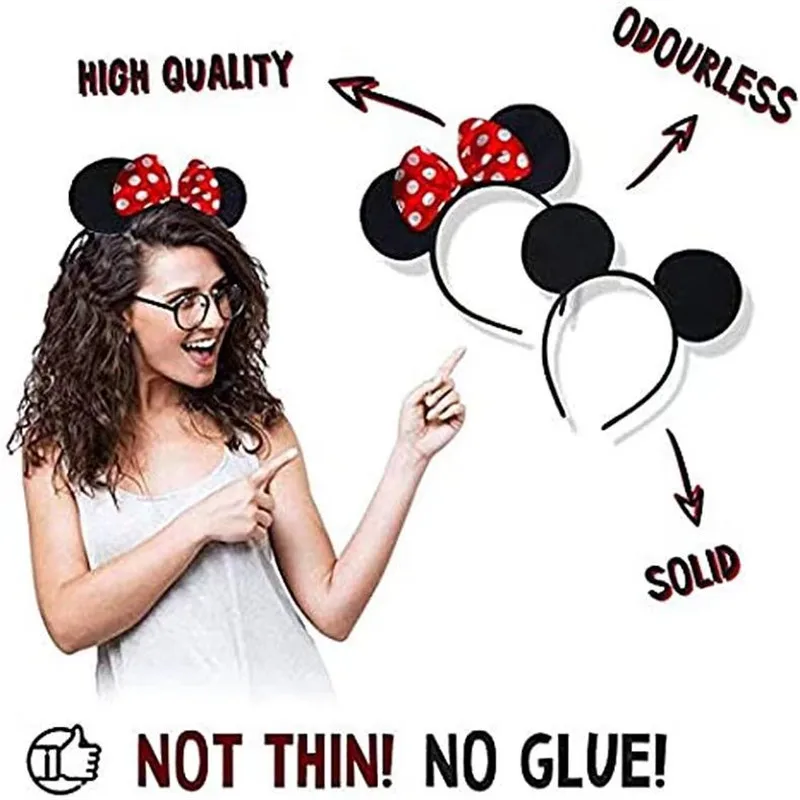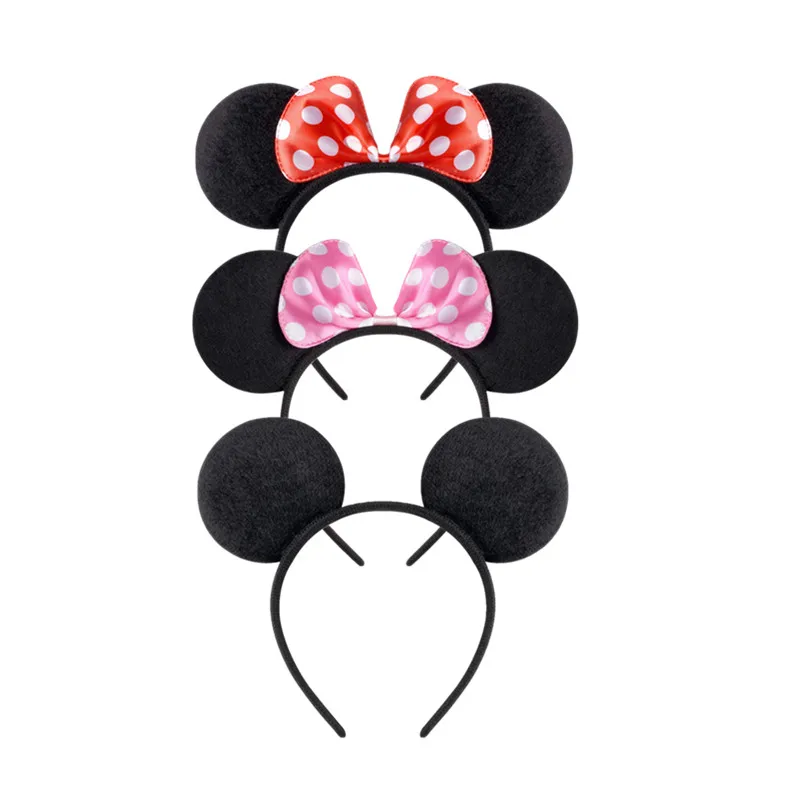 Однотонные черные и красные ранние уши Микки Мауса, искусственная ткань, уши Минни-Маус, повязка на голову с ушками Мауса для вечеринки, полезные украшения