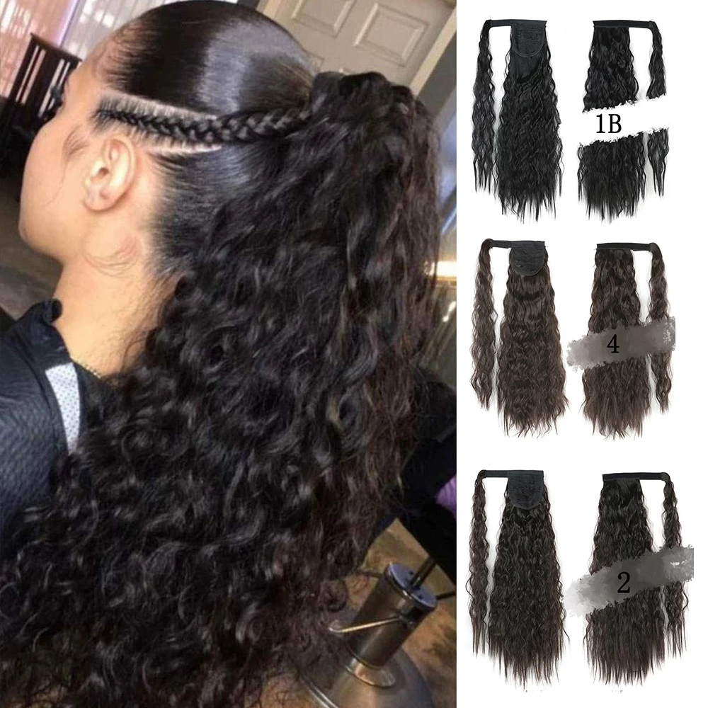 Синтетические волосы, 32 дюйма, кукурузная волна, вокруг конского хвоста, удлинители волос, Волшебная паста, длинный кудрявый конский хвост для девочек и женщин