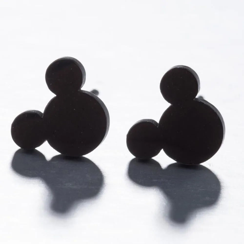 Модные простые маленькие милые дизайнерские серьги-гвоздики из нержавеющей стали с Микки аниме, эстетическое украшение для женщин, оптовая продажа аксессуаровТри цвета: серебристый/Золотой/розовое золото/черныйПродается парой
