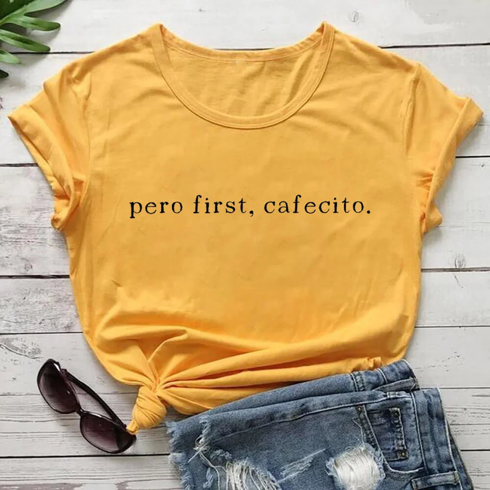 Preo First Cafecito хлопчатобумажная женская футболка испанские рубашки Мексиканская Летняя Повседневная футболка с круглым вырезом и короткими рукавами кофейные рубашки для влюбленных R469