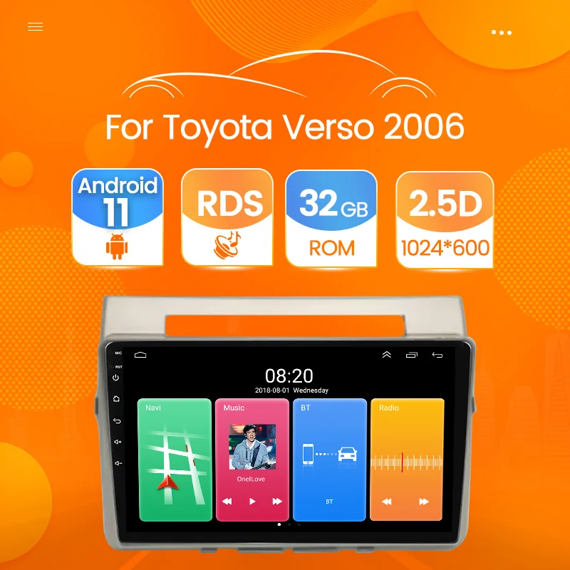 Автомагнитола для TOYOTA Corolla Verso 2006, 2007 дюйма, Android 11, 2din, мультимедийный видеоплеер с GPS, 6 ГБ ОЗУ, Авторадио, стерео HU с рамкой