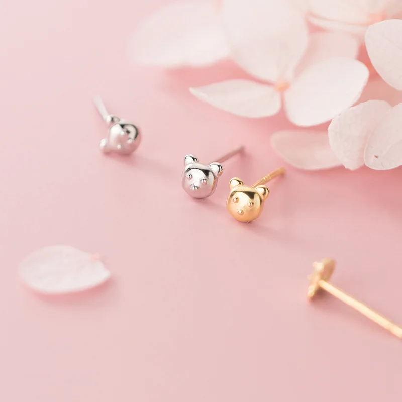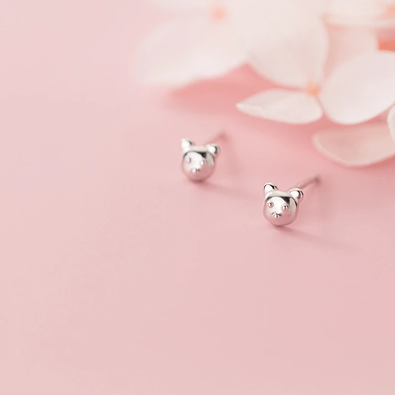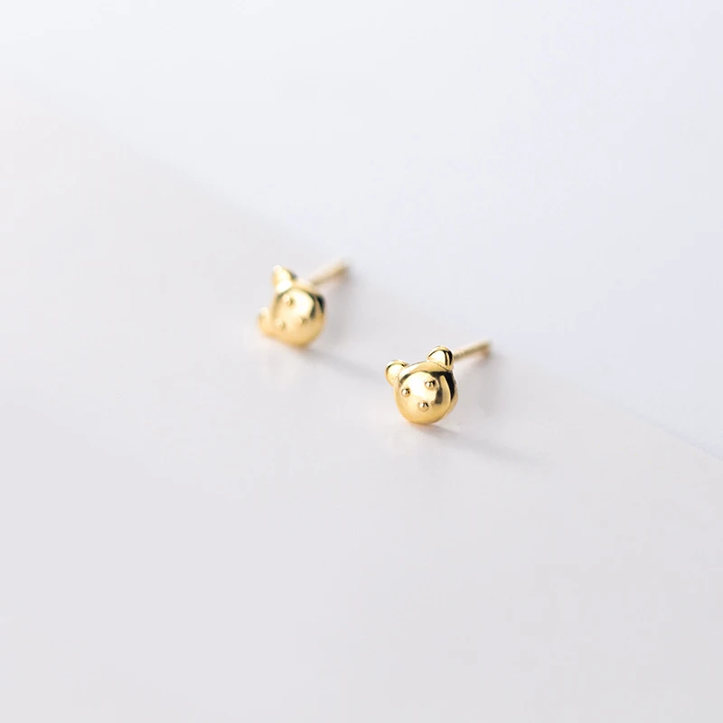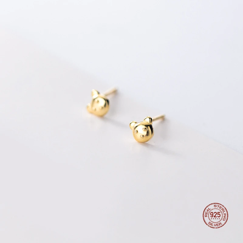LKO настоящее серебро 925 пробы 100% милые серьги-гвоздики с маленьким медведем для женщин изящные украшения милые милые аксессуары для ушей для девочек