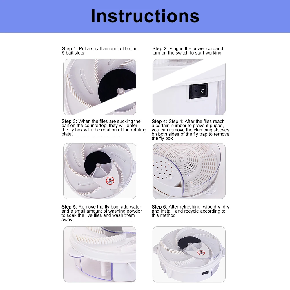 1. Поместите этот продукт в область, где часто двигаются мухи, и положите мед, воду или уксус, рыбные и Сладкие вещи в бак для приманки