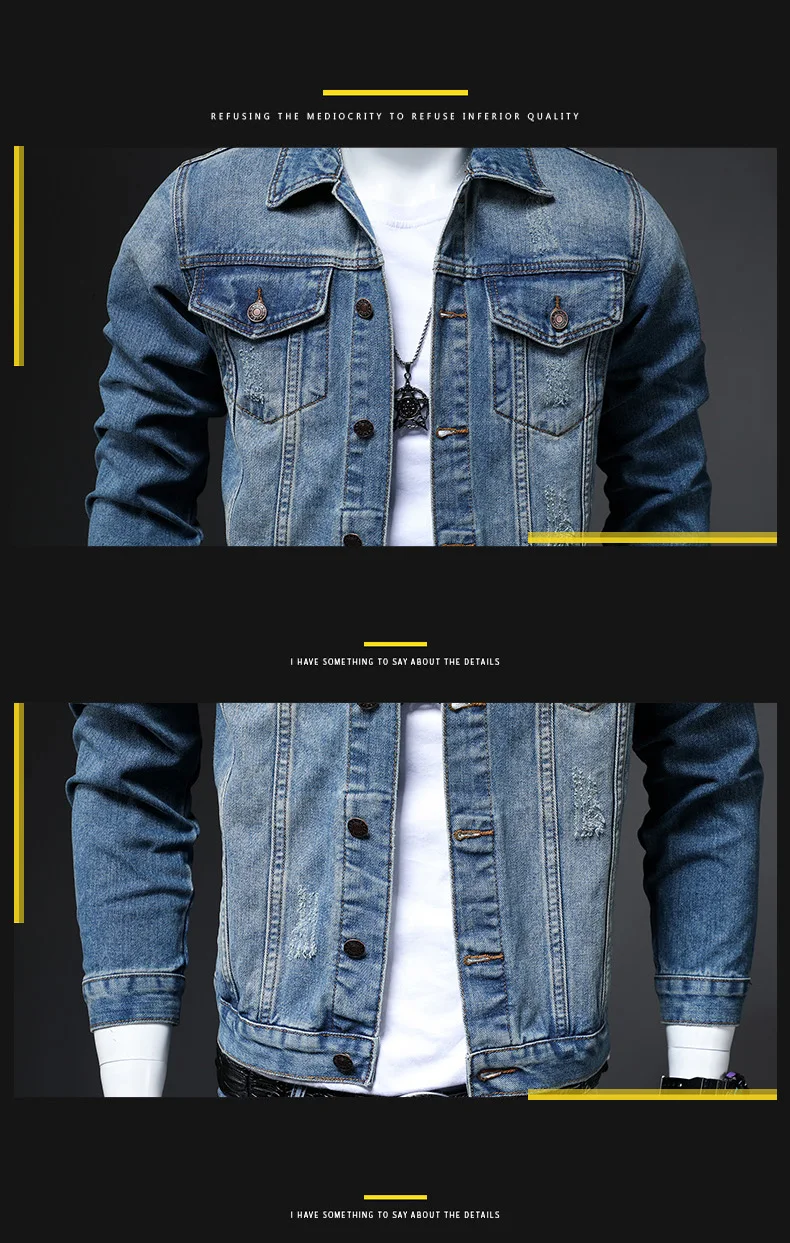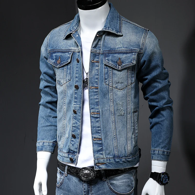 Джинсовая куртка мужская облегающая, винтажная трендовая джинсовая куртка классического дизайна, Модная приталенная уличная одежда, мотоциклетная верхняя одежда, весна-осень