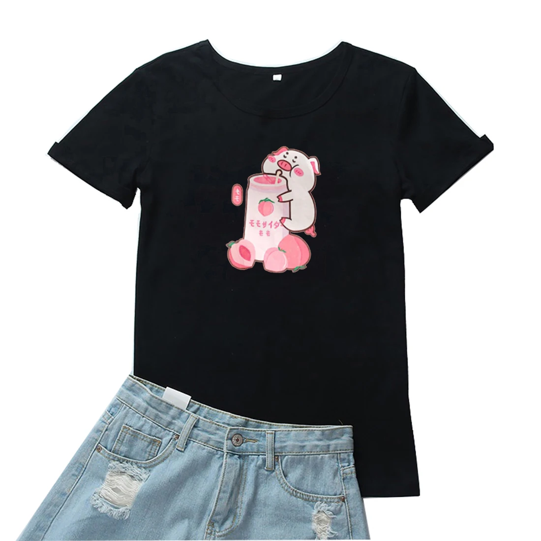 Женская футболка с рисунком в виде розовой свиньи, футболка с рисунком в виде милых животных, Женская свободная футболка с коротким рукавом, модная Готическая женская футболка
