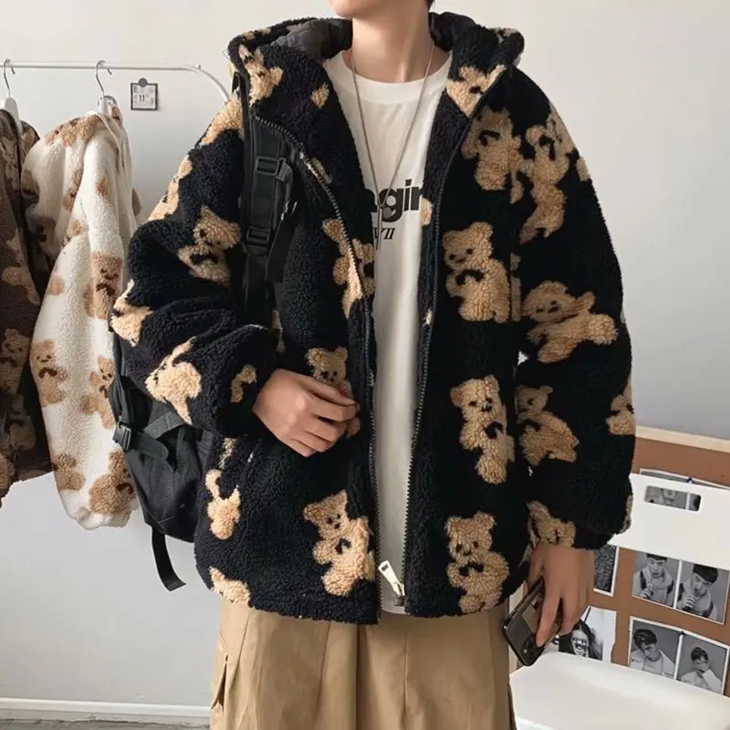 Женская толстовка с капюшоном и мультяшным медведем из овечьей шерс...