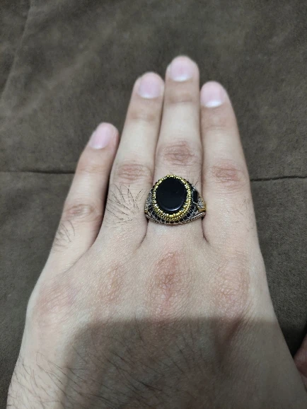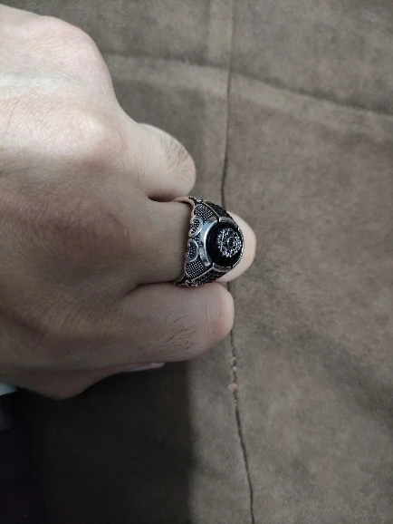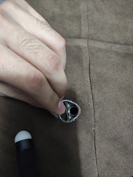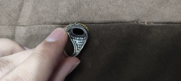 Кольцо красивое, но немного отличается от изображений, например, черные области, которые вы видите на фотографии, на самом деле не окрашены. Кроме того, кольцо было с дефектом, центр кривой, это влияет на общую эстетику продукта.