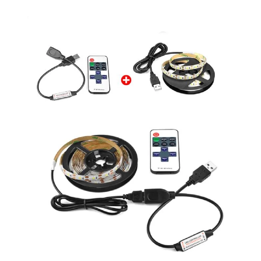 Приглушаемый настенный светильник с USB, 5 в постоянного тока, SMD 2835, светодиодная ленсветильник с дистанционным радиоуправлением, IP21, IP65, водонепроницаемая, 3528, гибкая лента, ночная лампа