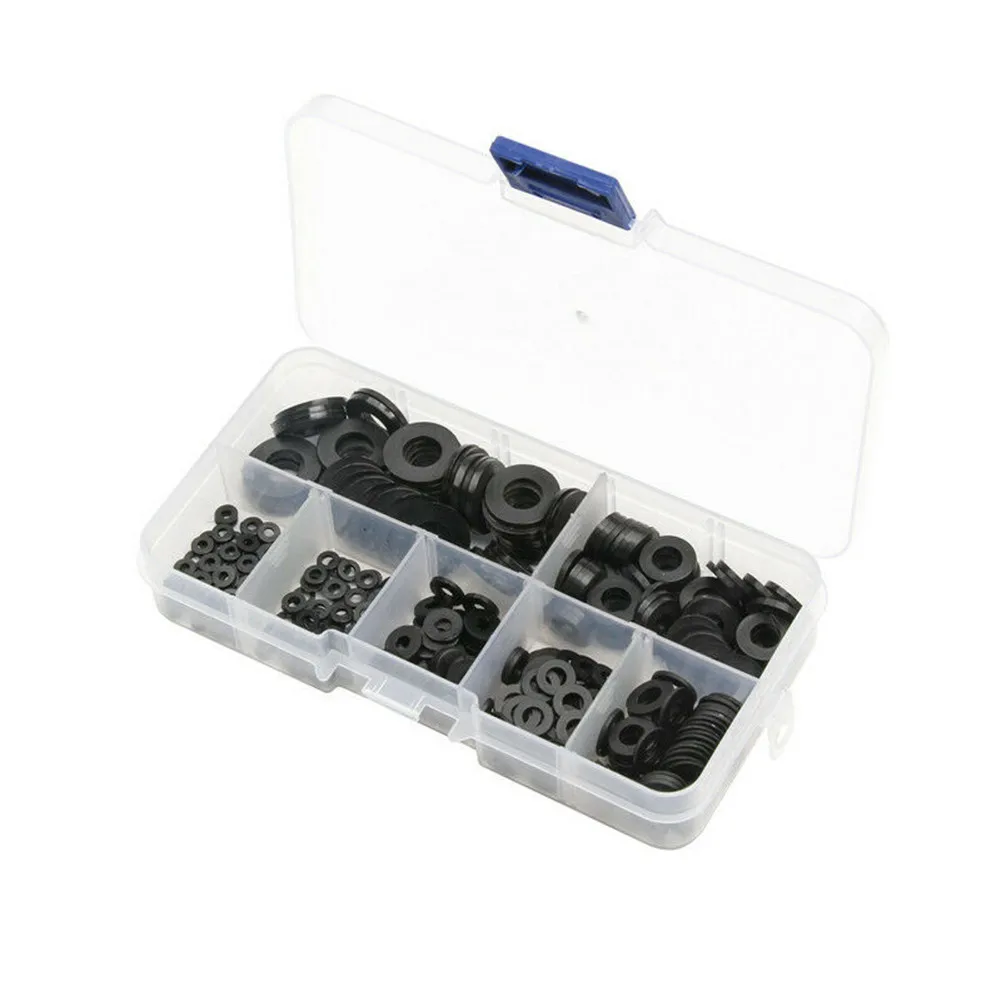 250 набор нейлоновых плоских шайб с коробкой, черное сантехническое уплотнение, буферная упаковка, шайба для крана, раковины, уплотнительное кольцо, шайба для домашнего декора, аксессуары