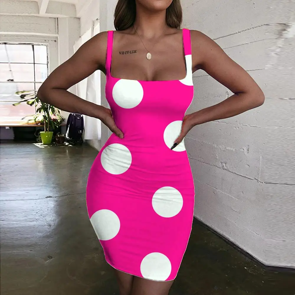 Женское платье в горошек KYKU, Красное Облегающее Платье без рукаво...