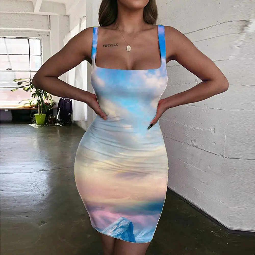Женское облегающее платье KYKU, летнее пляжное платье с 3D-принтом ...