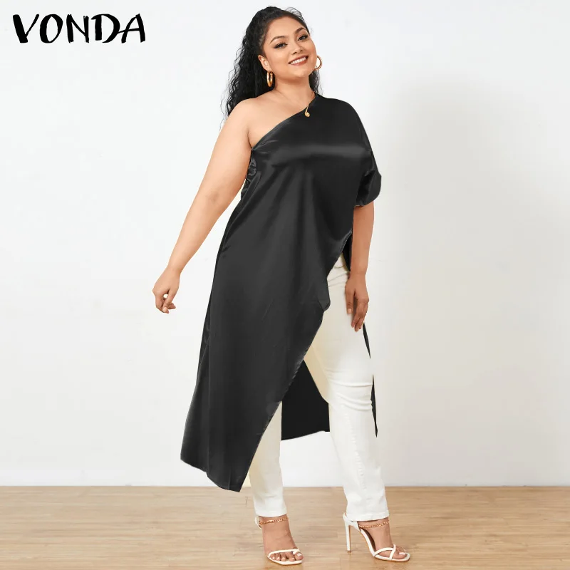 Длинная Асимметричная Женская Туника VONDA, пикантная рубашка с открытым плечом, праздничные пляжные Топы большого размера