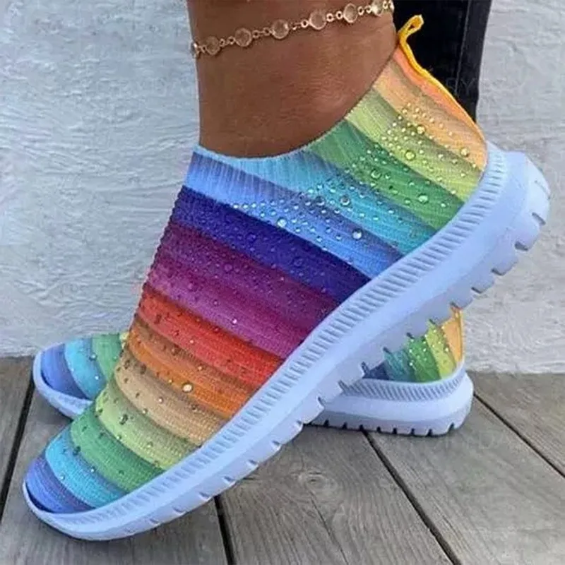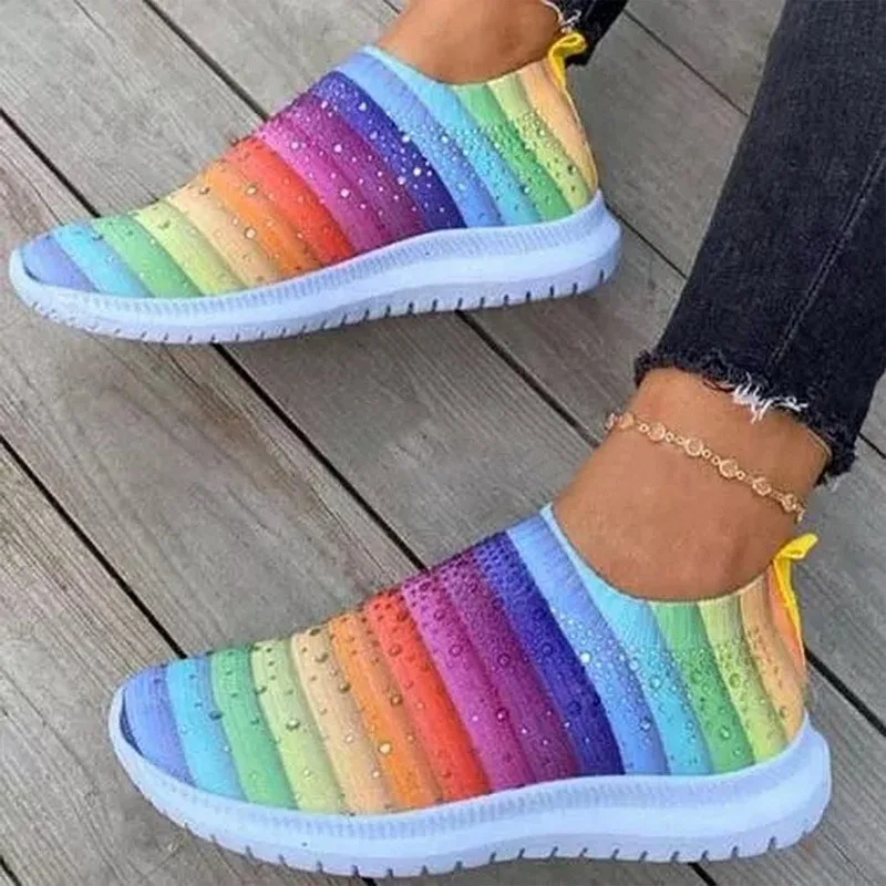 Кроссовки женские с низким верхом, сетчатые, Вулканизированная подошва, радужная расцветка, повседневная обувь для отдыха, ручная работа, лето-осень