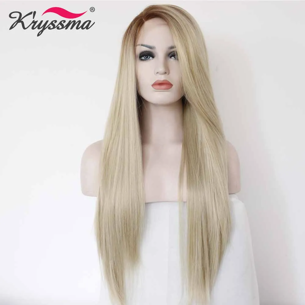 K'ryssma светильник, блонд, парик, синтетический, кружевной, передний парик для белых женщин, косплей парик, длинный, прямой парик