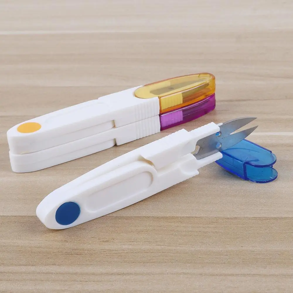 Цветные прозрачные U-образные ножницы с крышкой, V-образные ножницы, маленькая пряжа ручной вышивки