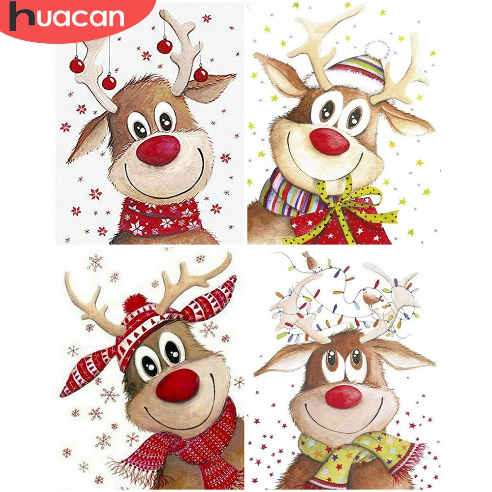 HUACAN Рождественский олень картина по номеру наборы животных для взрослых ручная роспись DIY раскраска по номеру мультфильм на холсте домашний декор