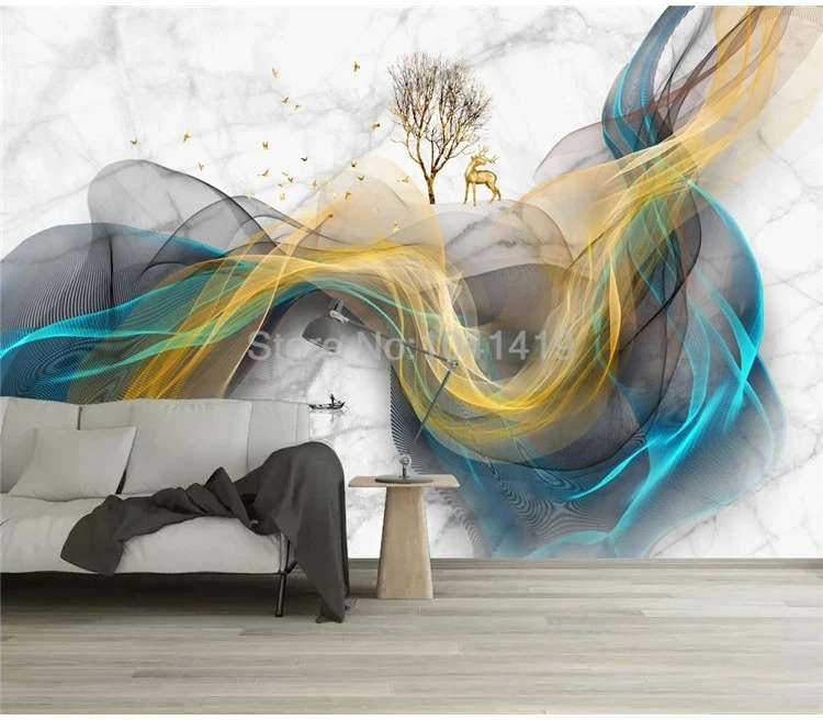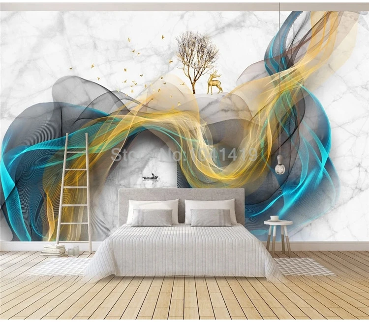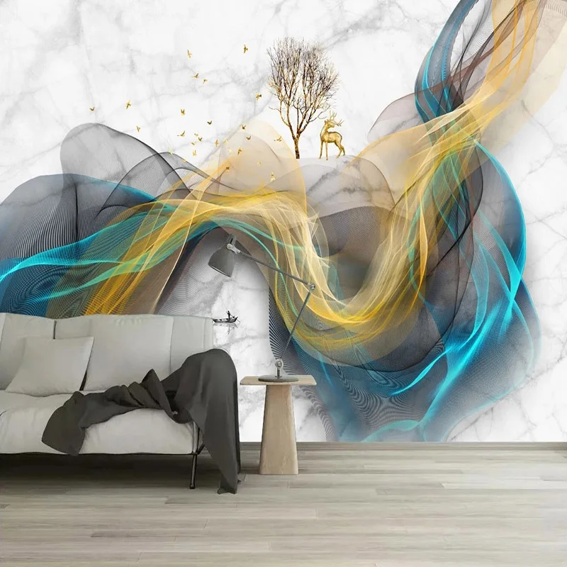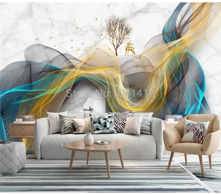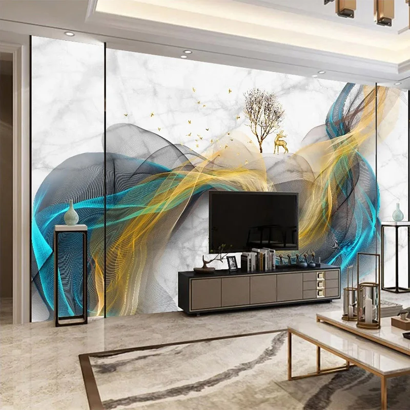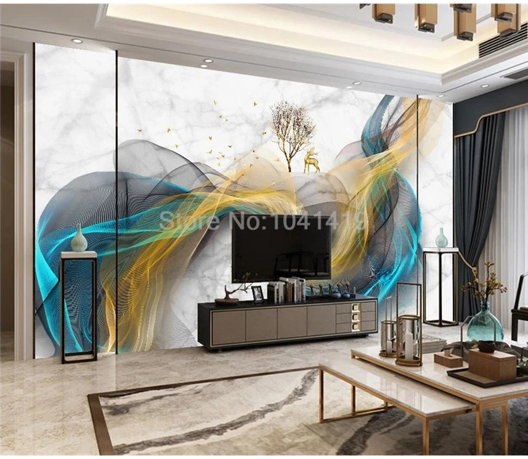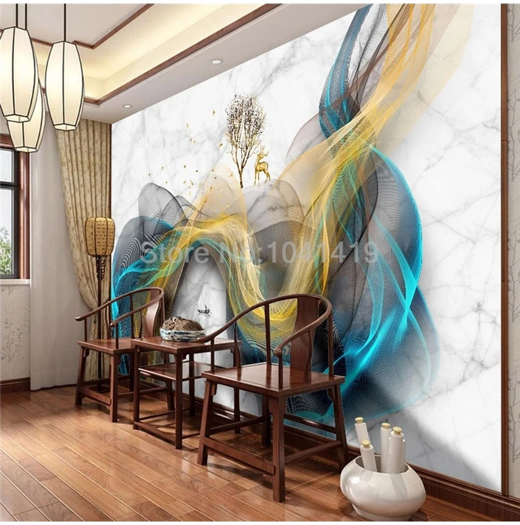 На заказ Настенные обои в китайском стиле современный светильник Роскошные абстрактные линии чернила пейзаж обои Пейзаж 3D домашний декор