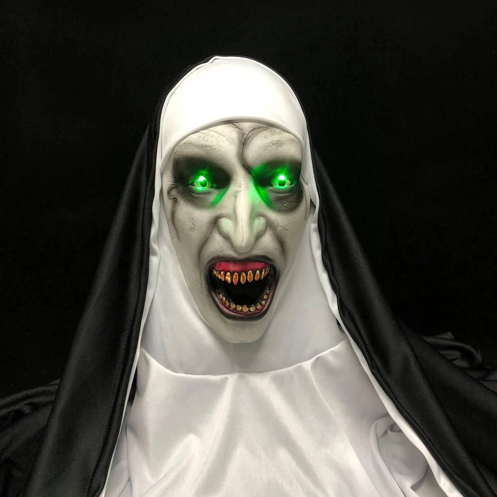 Маска монахини, маски для косплея, светодиодный валак, костюмы для Хэллоуина, страшные латексные маски, реквизит для костюма, Роскошные маски