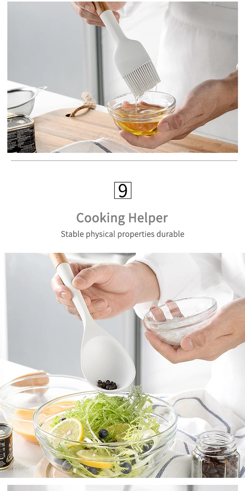 Materialfood grade silicone + solid wood handle