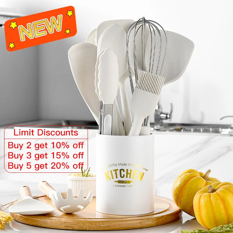 Наш новый набор силиконовых кухонных принадлежностей, с использованием пищевого силикона + ручки из цельного дерева