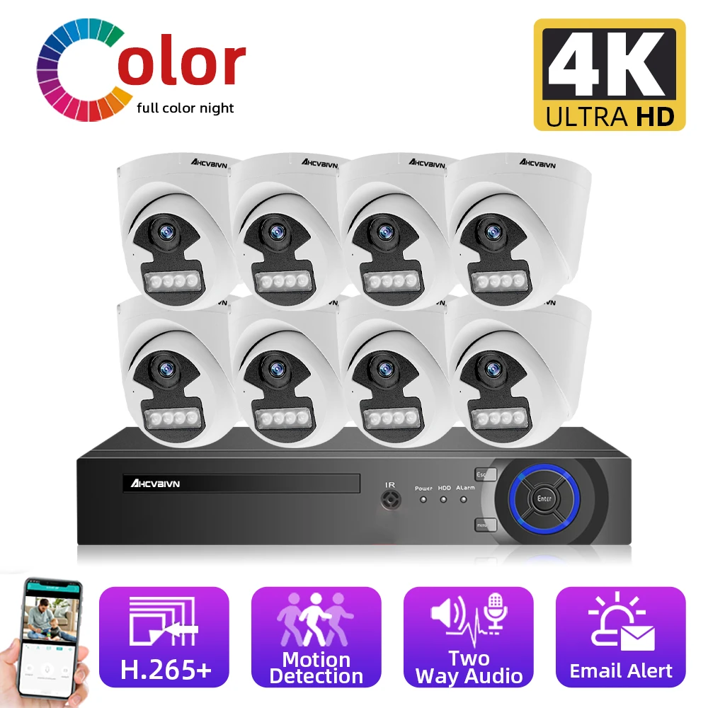 Система видеонаблюдения, 4K 8-канальный сетевой видеорегистратор с питанием по Ethernet, уличная цветная IP-камера с функцией ночного видения, 8 МП