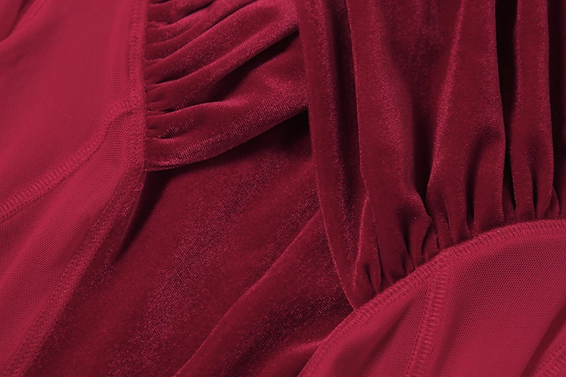 Женский бархатный комбинезон с длинными рукавами и сетчатыми вставк...