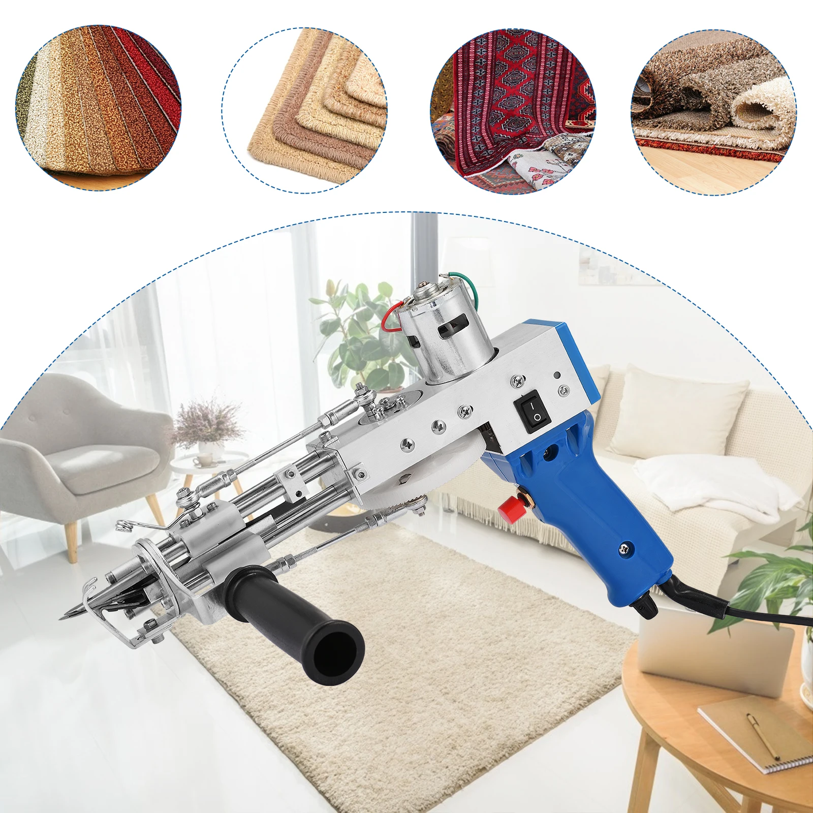 【 Пусковое устройство 2 в 1--- Электрический коврик тафтинга пистолет может вручную переключаться между отрезать ворс/петлю ворс, просто нужно заменить ножницы. Одна машина с двумя функциями, более экономичная. Высота ворса регулируется от 7 до 19 мм (отрезной ворс) , 4-14 мм (петельный ворс).【DIY ковры TOOLS】-Этот Электрический тафтинговый пистолет может не только сделать DIY вырезанные и петлевые ворсовые ковры самостоятельно, но и сделать виды классных работ для декоративных/практичных.【SIGNIFICANT FEATURE】--- Входная мощность: 70 Вт; Источник питания: 110-240 В/50-60 Гц; Скорость двигателя: 2400 об/мин.【Высокая EFFICIENCY】--- Скорость этого коврового пистолета может достигать 5-40 стежков в секунду, что увеличивает эффективность производства в 80-150 раз, что экономит больше рабочей силы и времени, чем ручное вязание.【WIDELY APPLICATION】--- Легко работать, легко осваивать, долгий срок службы, меньше хлопот. Машина портативная, она также производит огромные изменения в традиционном ковре ручной работы, может вплетать много типов фантазии, в то же время более эффективный.