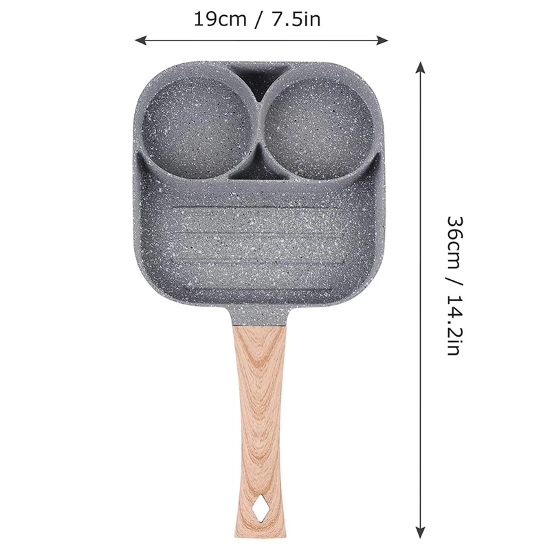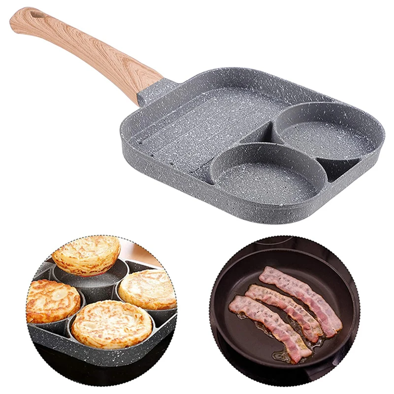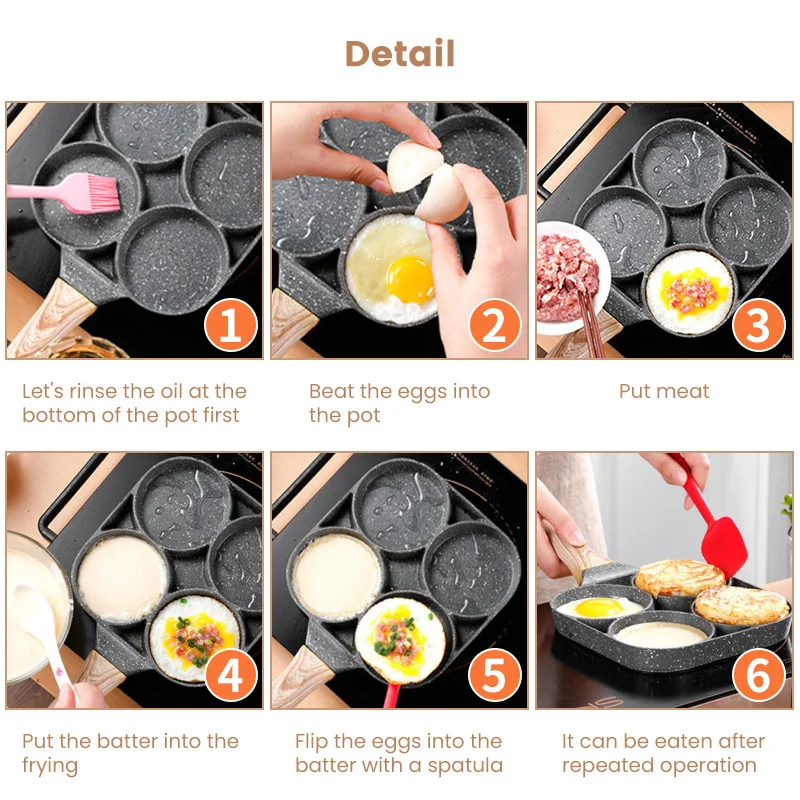 Сковорода может быть использована для приготовления жареных яиц, гамбургеров и т. д. сковорода имеет 4 отделения, что делает приготовление пищи быстрым и удобным.