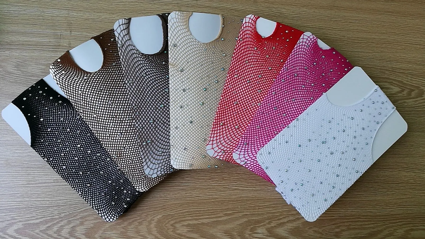 Колготки нейлоновые узкие, стразы, сетчатые, обтягивающие, для клуб...