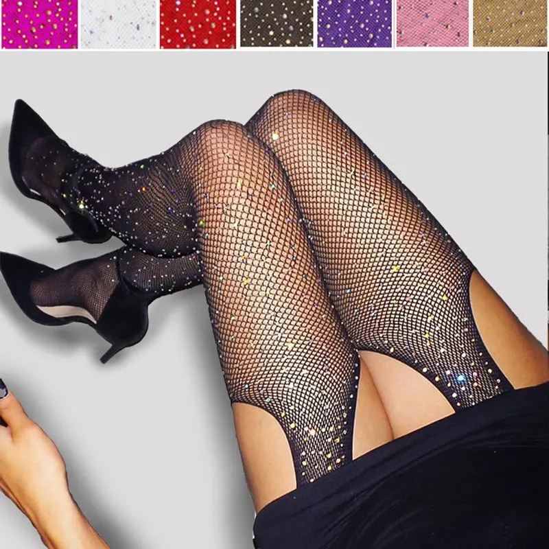 Сексуальные сетчатые колготки для Стразы, женские блестящие колготк...