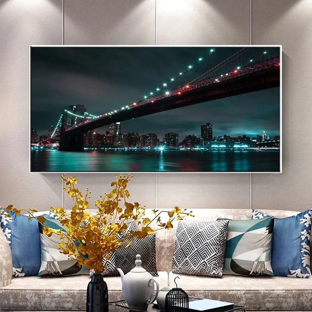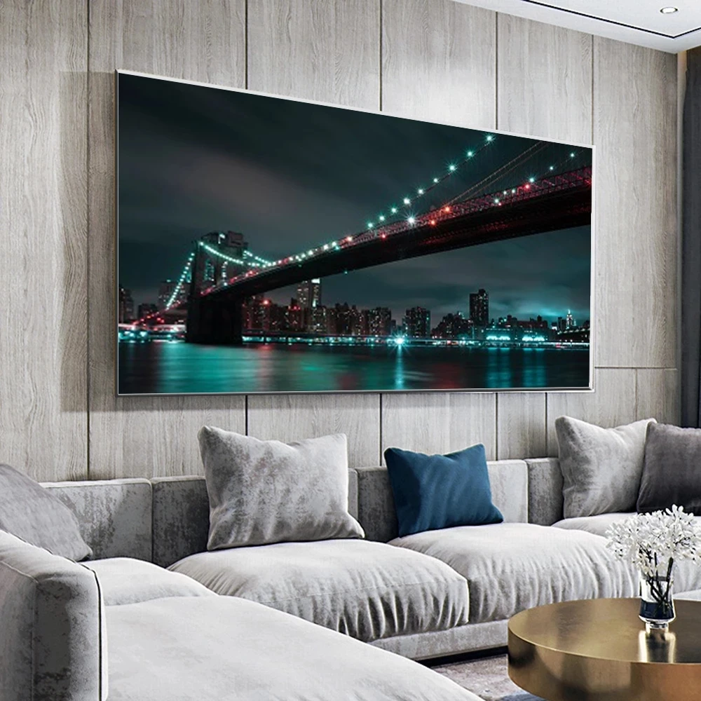 Ponte De Brooklyn Cartaz Da Lona Pintura Da Imagem Da Arte Sala De Estar Arte Impressa Modern Noite Vista