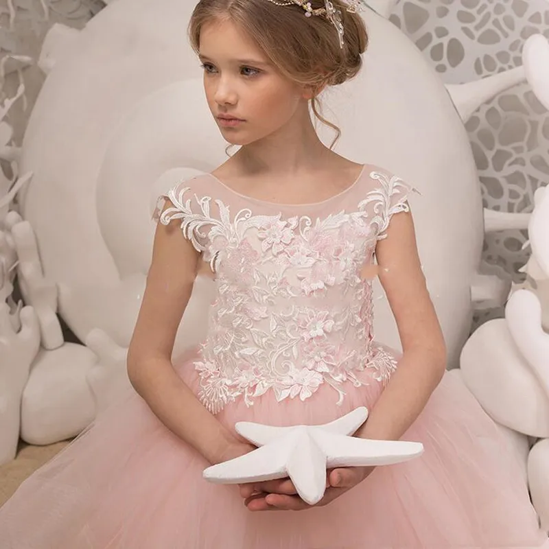Платья для девочек с цветами, розовые платья для девочек, милое Тюлевое официальное длинное детское платье принцессы, пышные платья для девочек, платье для свадебной вечеринки