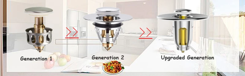 Всплывающий дизайн преобразует традиционный, неудобный слив (например, базовую пробку с цепью)! Просто осторожно нажмите на верхнюю крышку, чтобы переключить 2 режима-стопор (для удержания воды) и фильтр (для слива воды).