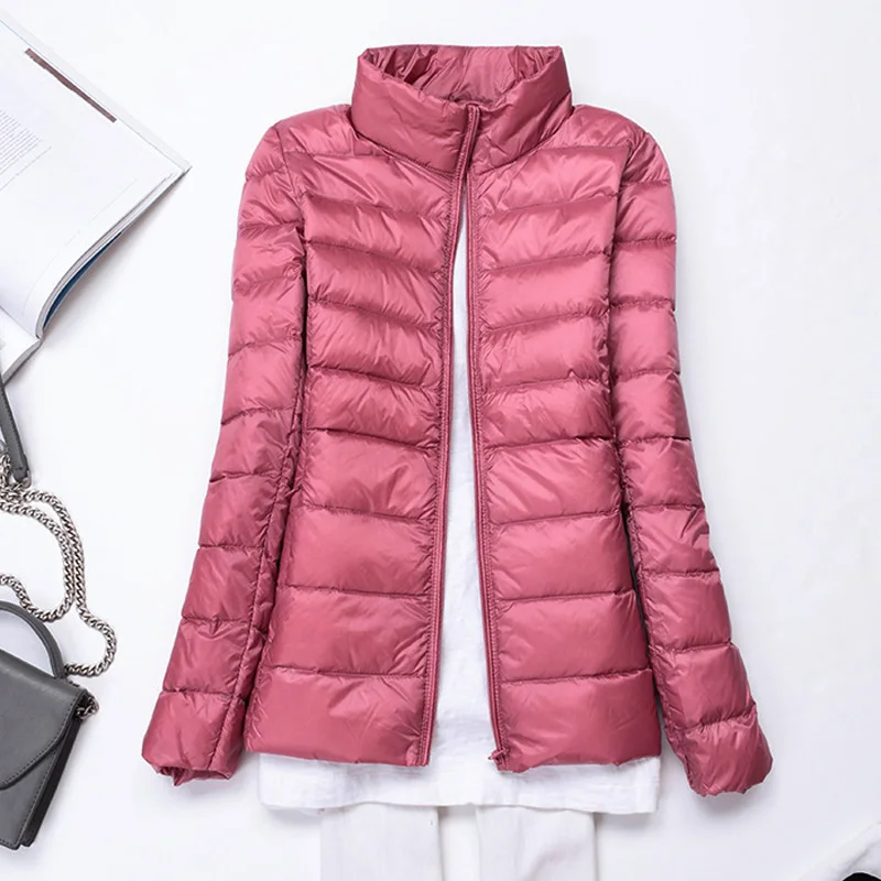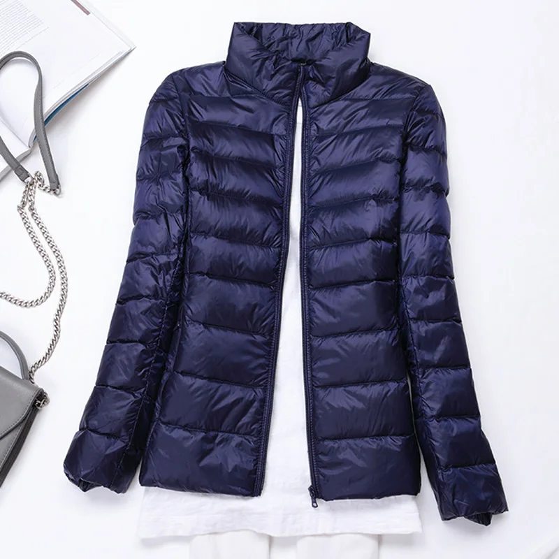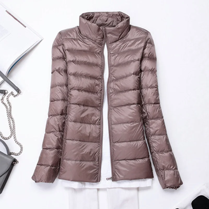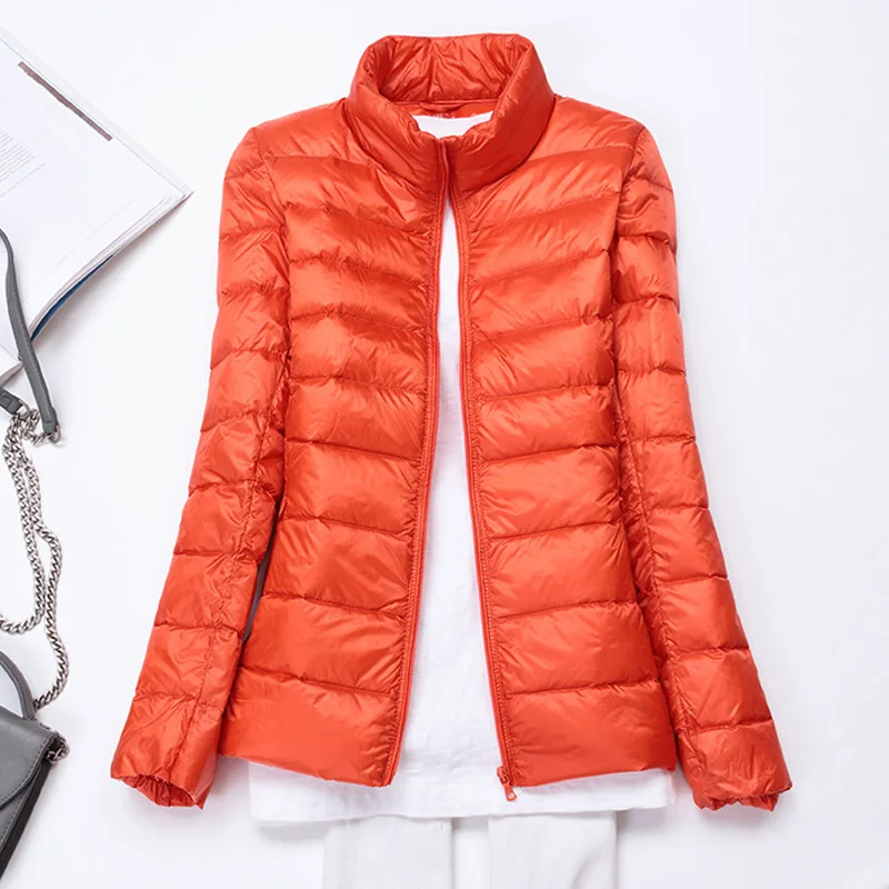 Женский тонкий пуховик, сверхлегкая куртка на белом утином пуху, с воротником-стойкой, теплая верхняя одежда для осени и зимы