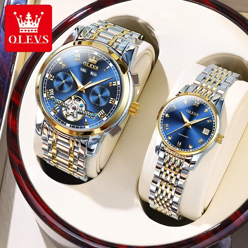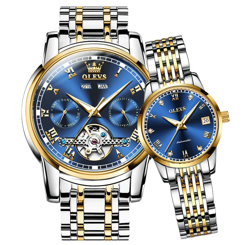 Часы OLEVS мужские и женские, механические, с автоподзаводом, часы с бриллиантами