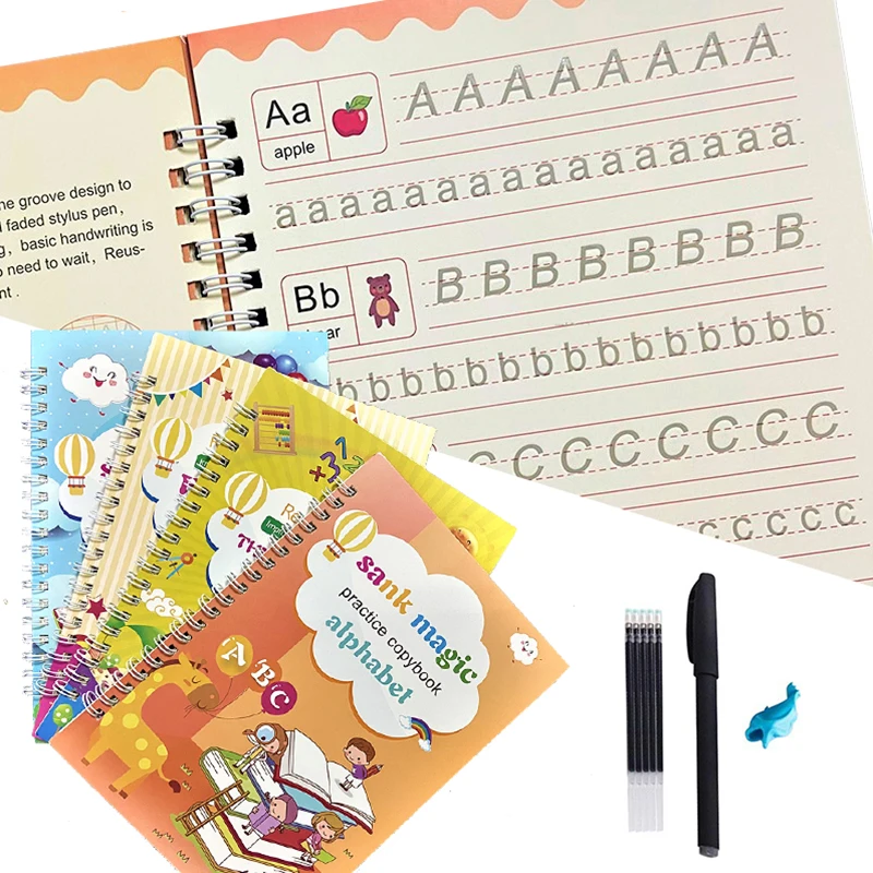 4 книги многоразовые книги для каллиграфии учим алфавит живопись арифметическая Математика дети почерк практика книги детские игрушки