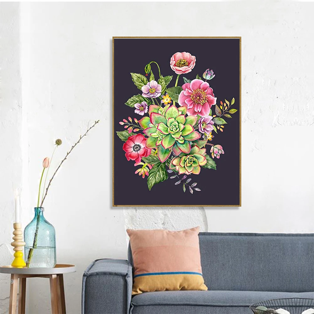 HUACAN Раскраска по номерам Цветок Сделай Сам комната настенная живопись по номерам растение для украшения дома подарок 60x75 см для взрослых