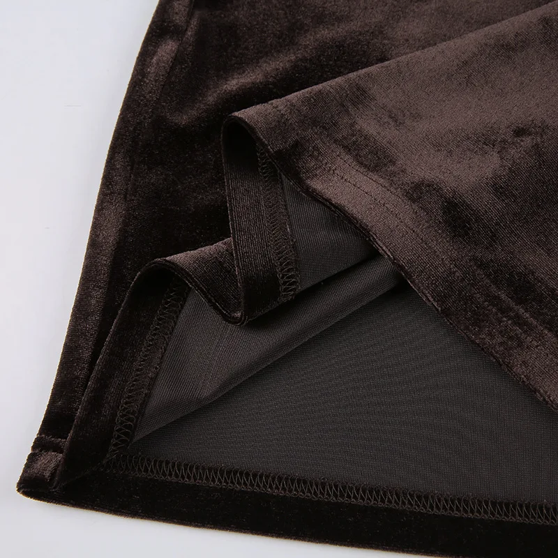 Женское бархатное пальто на молнии, с длинным рукавом и мини-юбкой