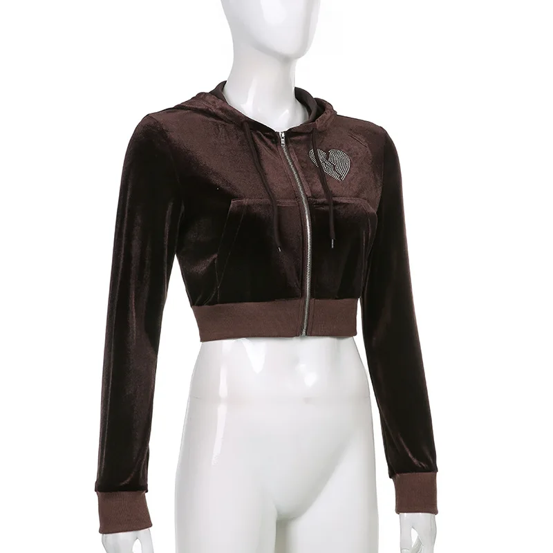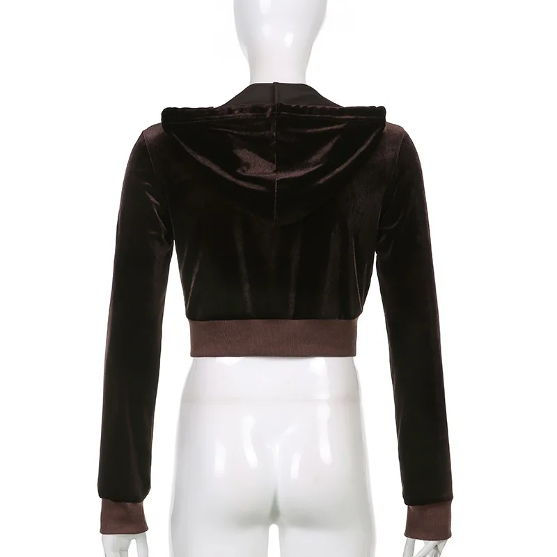 Винтажные бархатные куртки с капюшоном Y2K, милые женские толстовки...