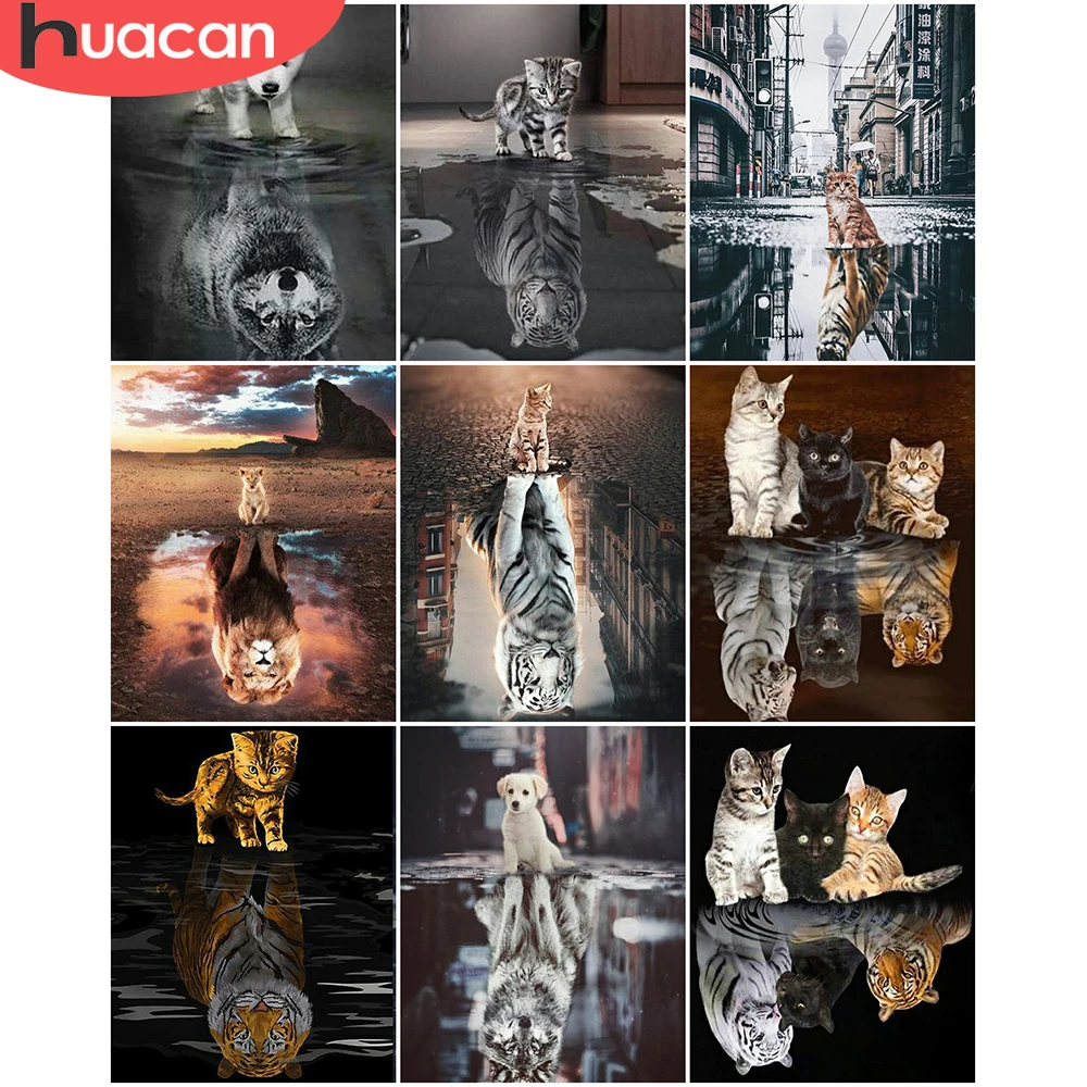 HUACAN картина по номеру кошка наборы животных для взрослых ручная роспись DIY раскраска по номеру тигр лев на холсте домашний декор