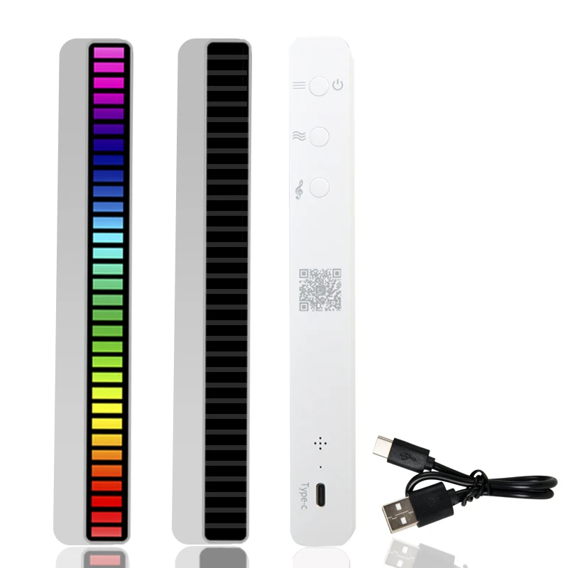 Напряжение: 5 В/1 а постоянного тока Встроенный аккумулятор 300мА Зарядка: USB type_c Материал: акрил + ПВХ Светильник: 32 светодиода на светильник Цвет: Дневной свет белый + RGB/ Частотная характеристика: 100-16 кГц