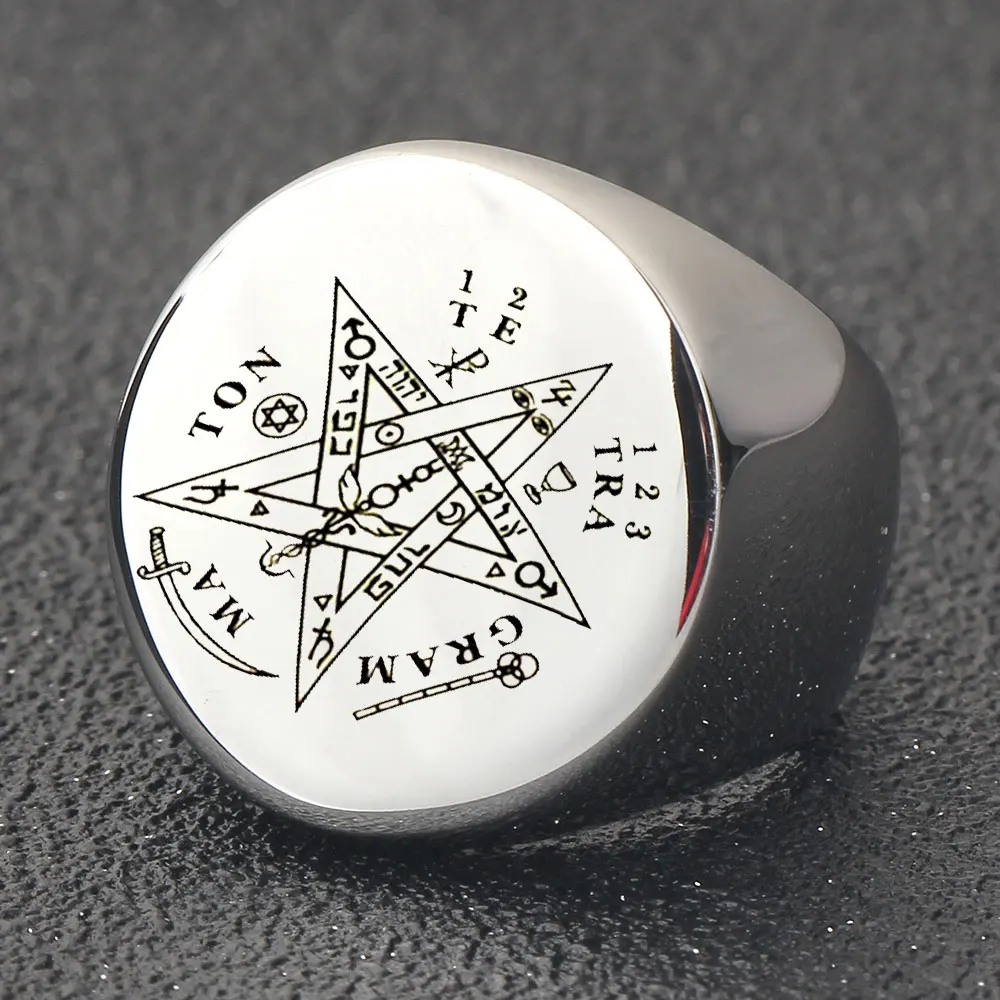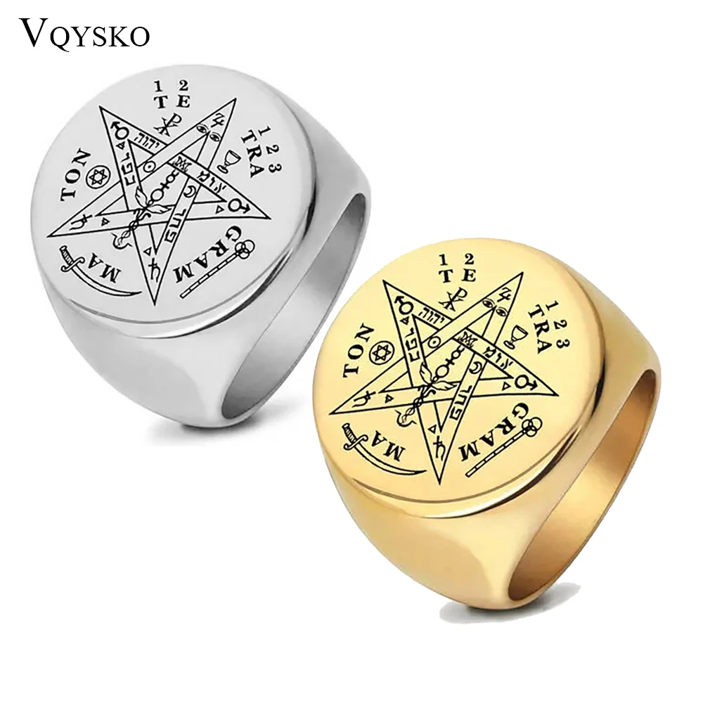 Модное мужское кольцо Tetragrammaton кольца викингов для мужчин Wahyeh Волшебная счастливая пентаграмма Соломона Амулет из нержавеющей стали Панк мужское кольцо