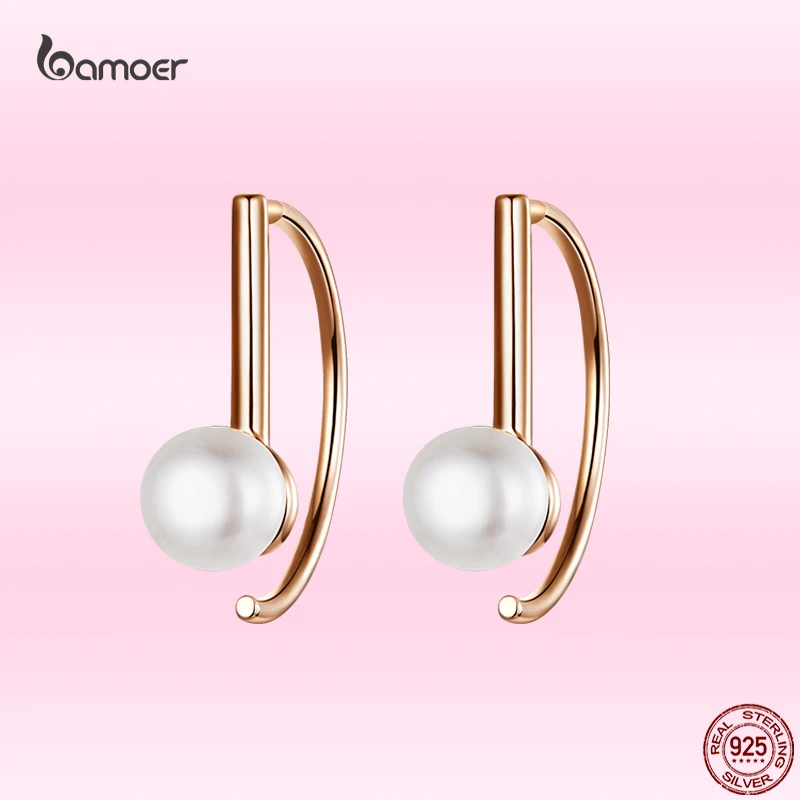 Женские серьги-гвоздики Bamoer, роскошные серьги из стерлингового серебра 925 пробы с покрытием из розового золота, элегантные свадебные ювелирные изделия, подарок