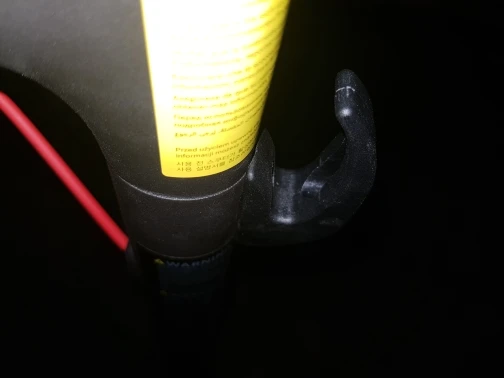 Крючок выглядит довольно сильным. Он поставляется без винтов, но вы можете воспользоваться теми, кто приносит скутер.