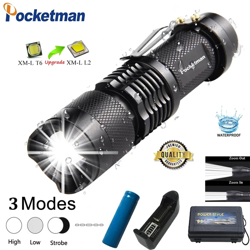 8000лм светодиодный мини фонарик L2 светодиодный фонарь масштабируемый фонарь, водонепроницаемый фонарь, карманные фонарики с батареей 18650