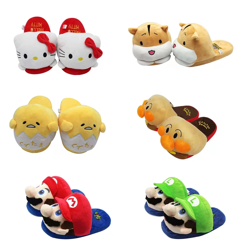 Симпатичные плюшевые шлепанцы для девочек, домашняя теплая хлопковая обувь, Тапочки с аниме мультяшными животными, пушистые сланцы, меховые сандалии для женщин
