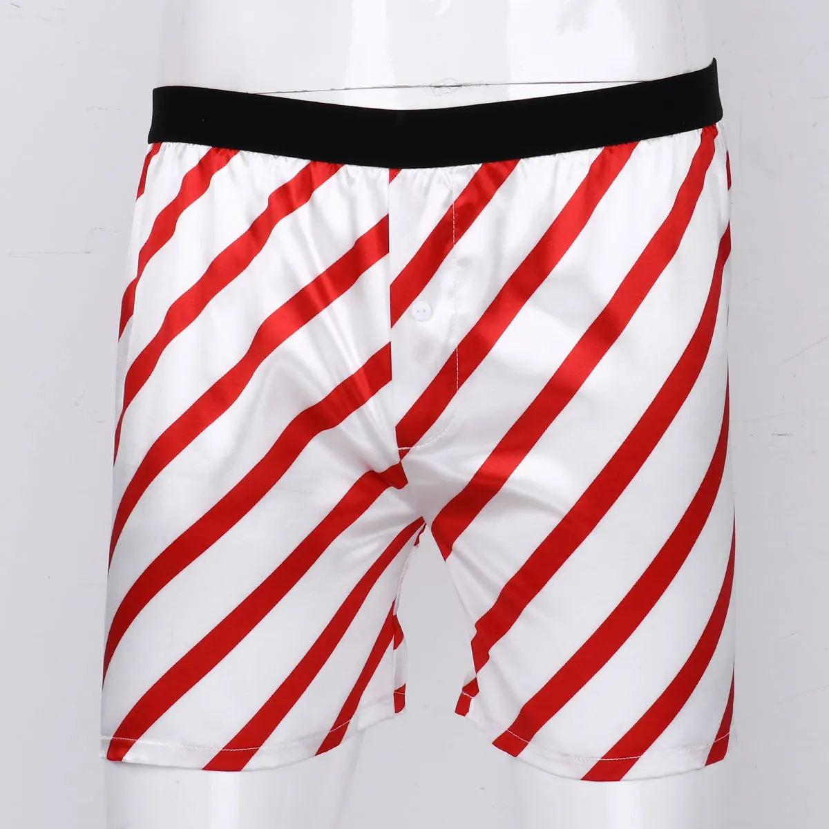 # M-XXL мужское гладкое Шелковистое атласное нижнее белье Классические Полосатые Рождественские шорты Боксеры свободные шорты для отдыха