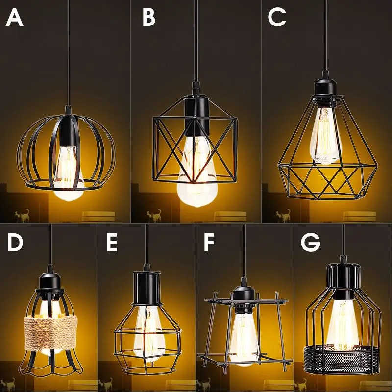 Характеристики:Тип: подвесной светильникШнур: черный Apro x1 метр (можно сократить-регулируемый)Диаметр оттенка: от 13 см до 20 см (зависит от вашего выбора). Пожалуйста, посмотрите изображение.Celing Rose: черный цвет металла (диаметр: около 12 см)Приспособления для лампочки: E27 (Эдисон Стиль) 110V/220V (не включает лампочку)В коробке и абсолютно новый.