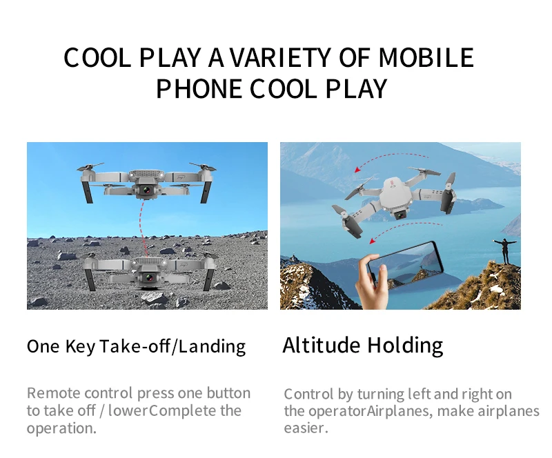 Мини-Дрон CONUSEA E88 Pro 4k 1080P с двойной камерой, Wi-Fi, FPV